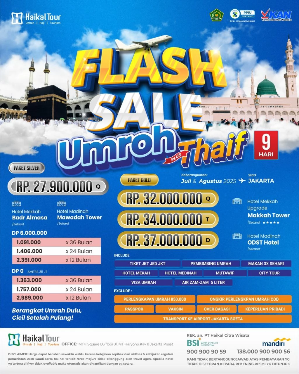 Flash Sale Umrah Plus Thaif – Hanya 27 Jutaan!