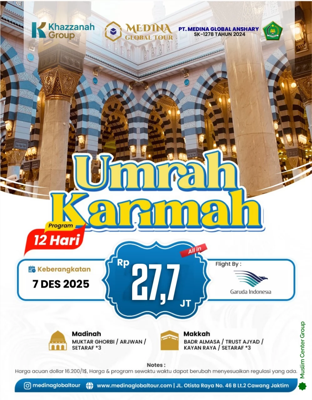 Harga Hemat Umrah 12 Hari Khazzanah Tours 27,7 Juta – Keberangkatan 7 Desember 2025 Jakarta Timur